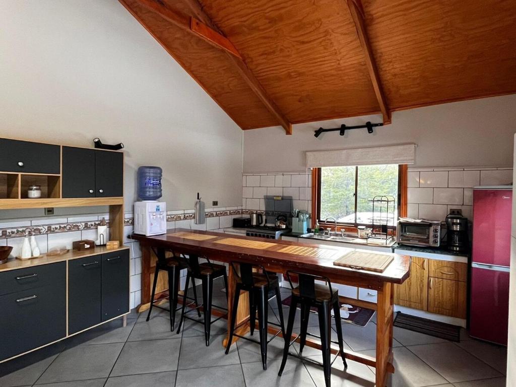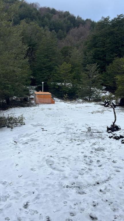 Cabaña en Conguillio nieve con vista al volcan y tinaja
