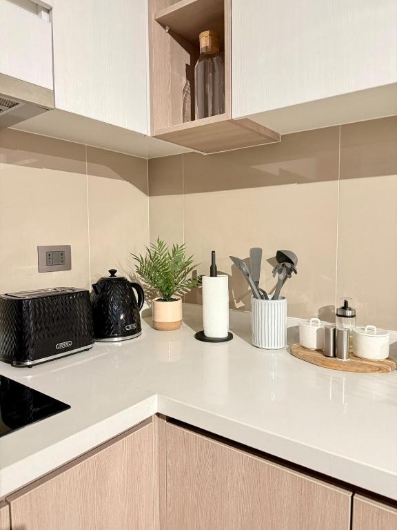 The private pool is the standout feature of this apartment. Guests can make meals in the kitchen that features a stovetop, a refrigerator, an oven and a microwave. The air-conditioned apartment features a flat-screen TV, a washing machine, a tea and coffee maker and tumble dryer. The unit has 1 bed.