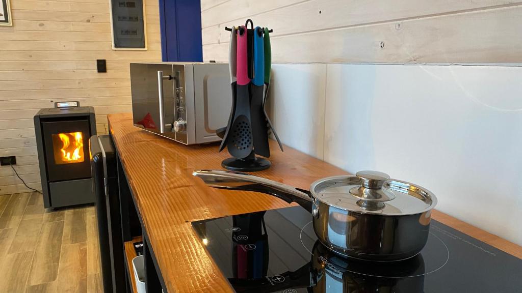 The hot tub and fireplace are the special features of this holiday home. Boasting a private entrance, this holiday home comes with 1 living room, 2 separate bedrooms and 1 bathroom with a walk-in shower and a bath or a shower. The well-equipped kitchen has a refrigerator, kitchenware and a microwave. Featuring a terrace with lake views, this holiday home also features a tea and coffee maker and a flat-screen TV. The unit has 4 beds.