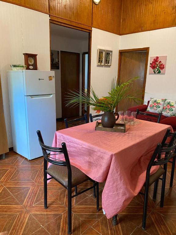 Zona de cocina, Nevera, Cocina, Hervidor eléctrico, Utensilios de cocina, Tostadora, Productos de limpieza, Mesa de comedor, Copas de vino
