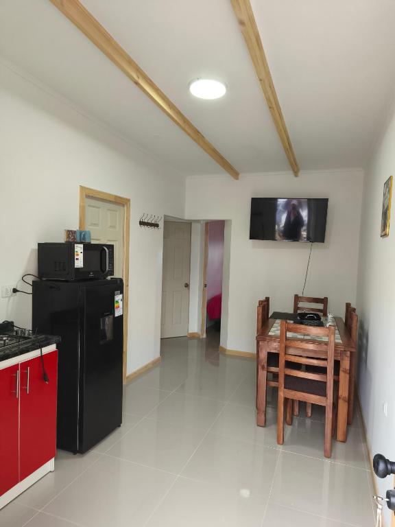 Zona de cocina, Nevera, Microondas, Lavavajillas, Cocina, Utensilios de cocina, Tostadora, Productos de limpieza, Mesa de comedor, Copas de vino