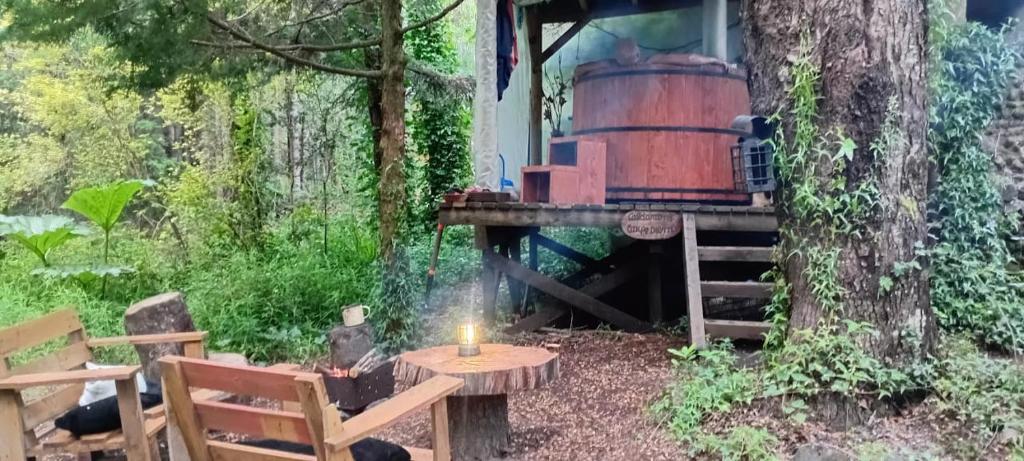 Hay un restaurante disponible en Pucón Magic forest.