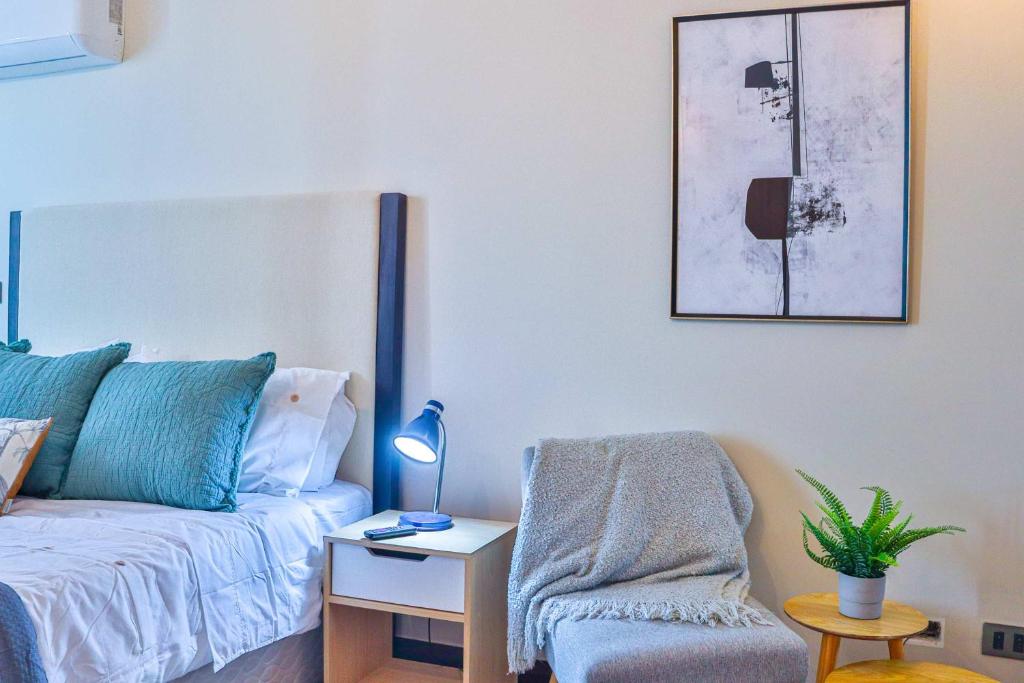 Guests can make meals in the kitchen that has a stovetop, a refrigerator, kitchenware and an oven. The air-conditioned studio features a TV with streaming services, a private entrance, a tea and coffee maker, a wardrobe as well as city views.