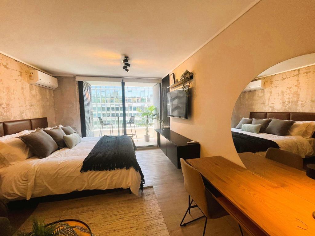 HOM I Inmejorable Estudio a Estrenar en Las Condes dispone de estacionamiento para sus huéspedes.