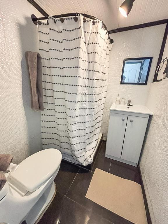 Ducha, Secador de pelo, WC, Toallas, Papel higiénico, Champú, Acondicionador