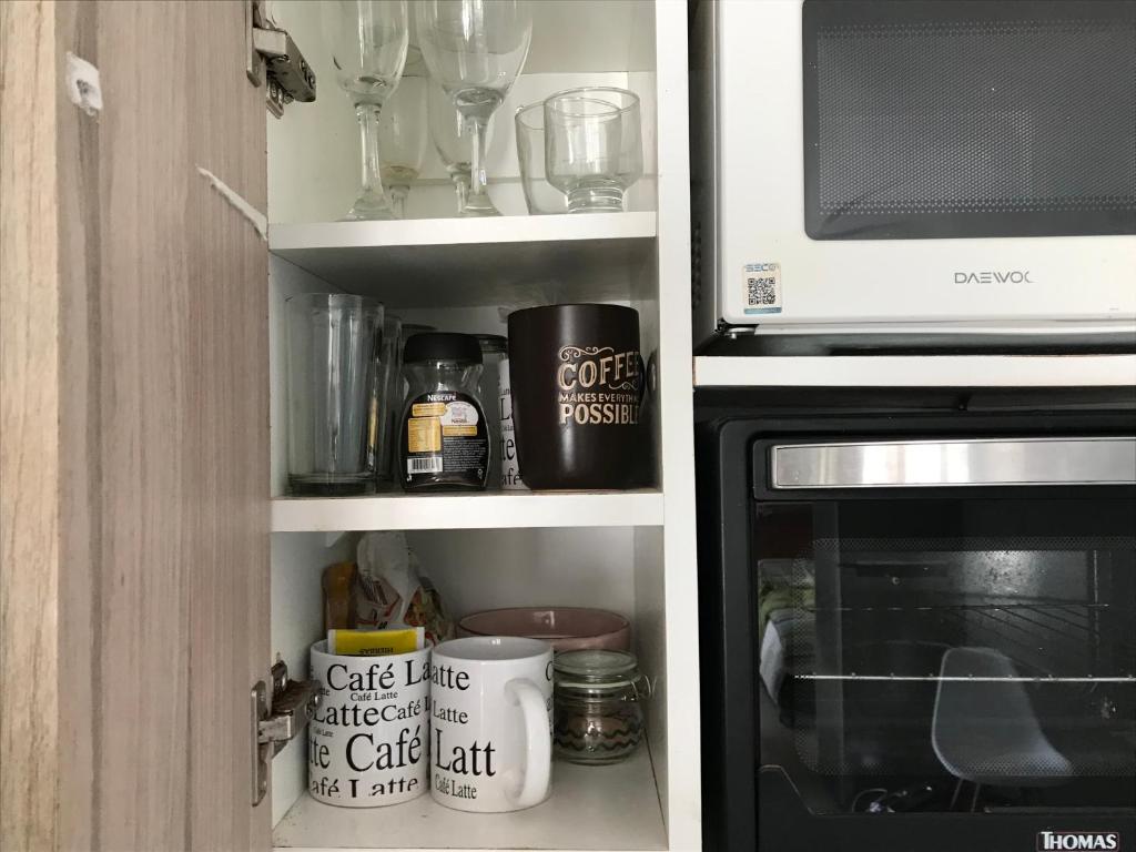 Zona de cocina, Nevera, Microondas, Cocina, Hervidor eléctrico, Utensilios de cocina, Horno, Productos de limpieza, Mesa de comedor, Copas de vino